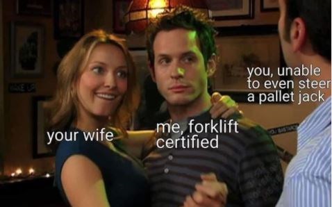Forklifts serve the needs of various industries including warehouses and other large storage facilities. They know the best tyre type for your applicationhttpsww. Forklift operators and welders. What is the Meme Generator. This is why before operating a forklift it is important to familiarize yourself with the owners manual where you can read the location of the controls and understand how each control works. The steering controls are similar to ones youd find in a golf cart or a regular car. If youre a little confused heres the viral meme explained.